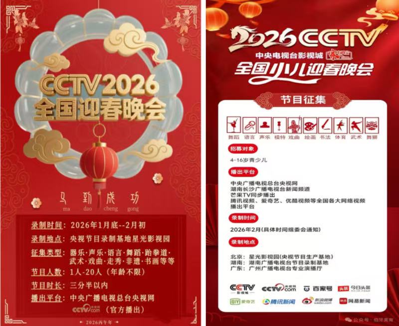 正在阅读:关于“CCTV 2026全国迎春晚会” “2026 CCTV全国少儿迎春晚会”等节目招募录制的严正声明